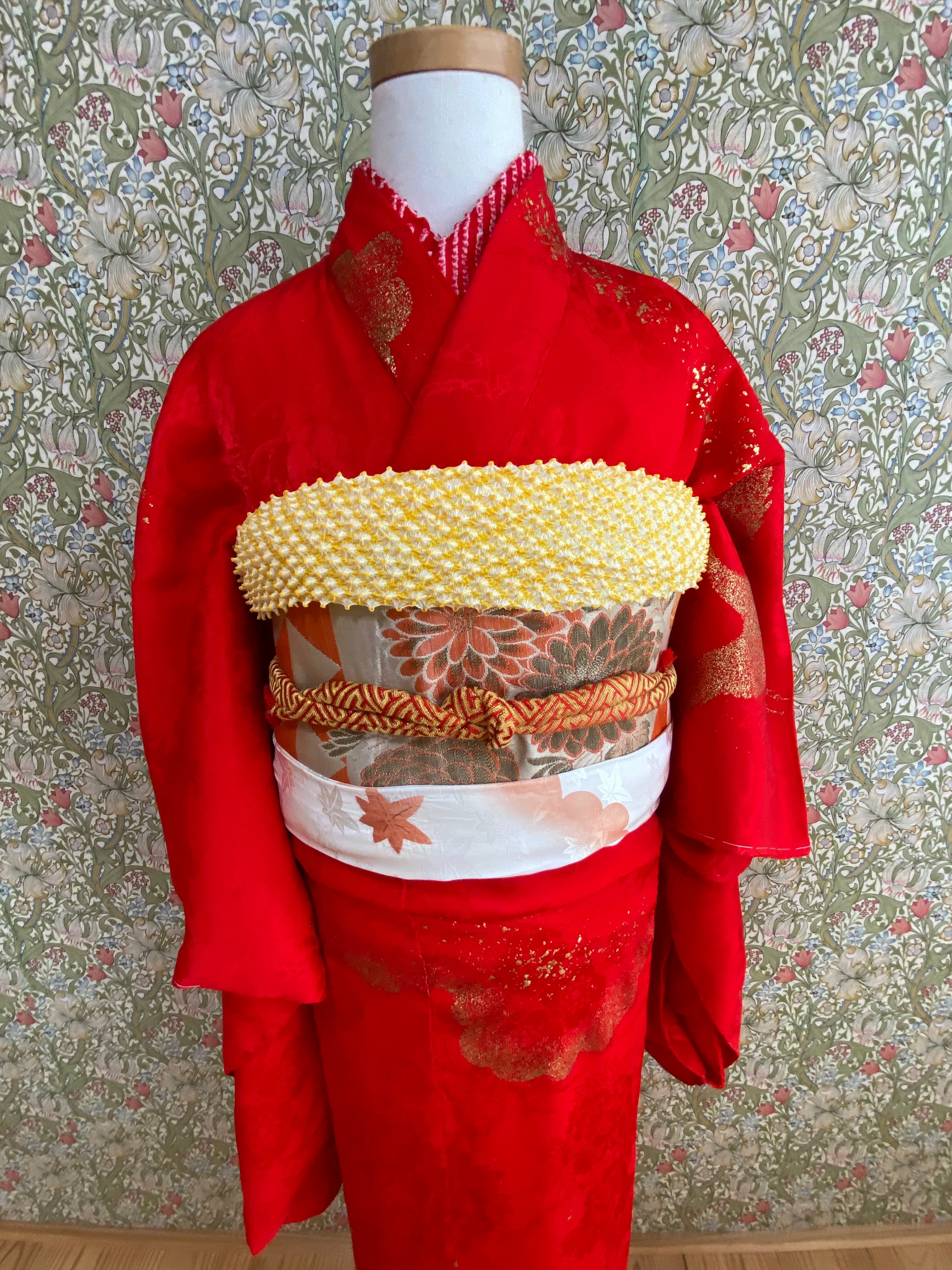 アンティーク7歳振袖赤地金箔鶴ちゃん