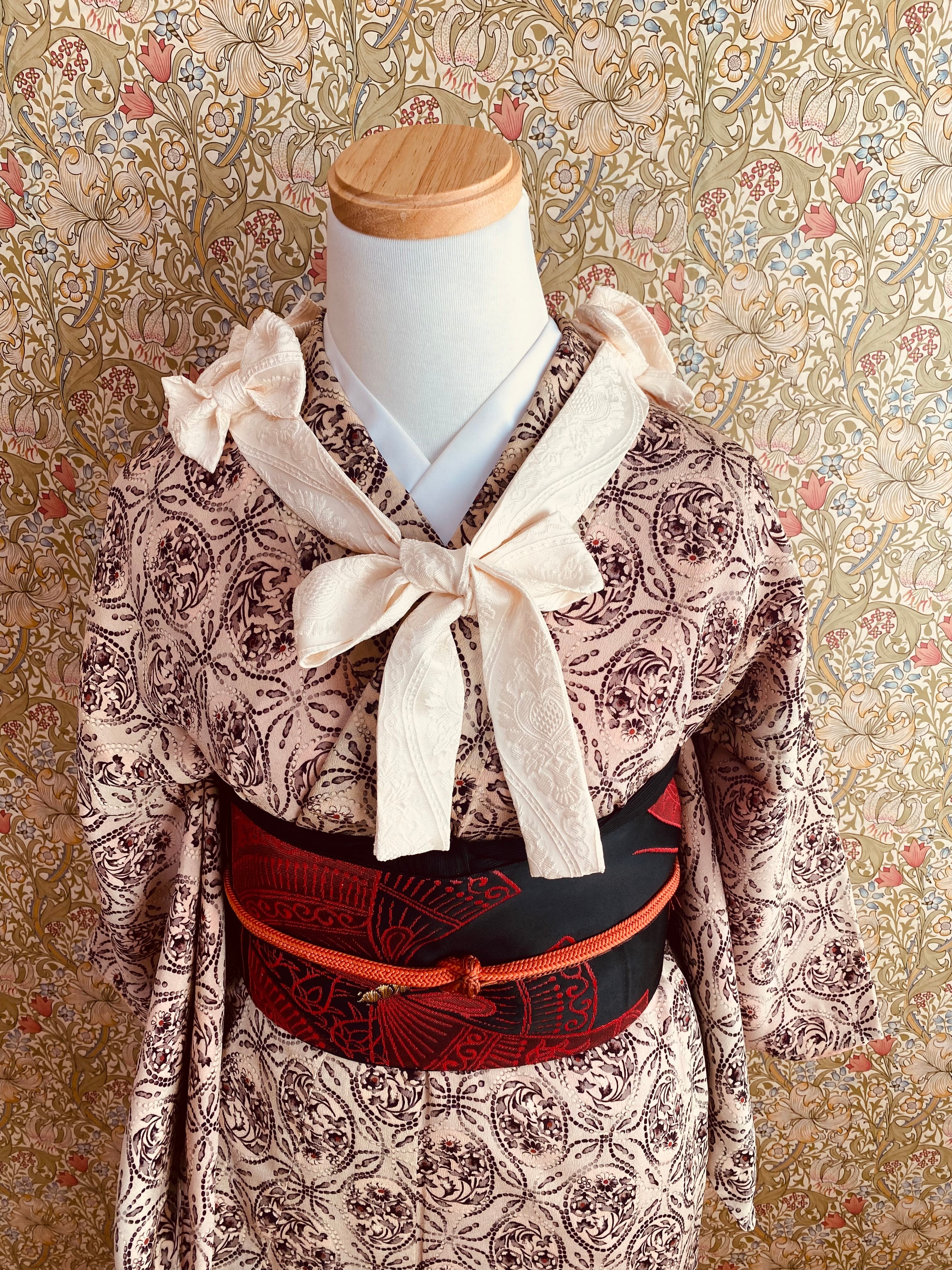 シャンデリアのような華やかな柄のアンティーク着物です。